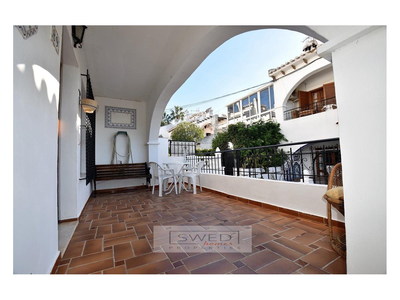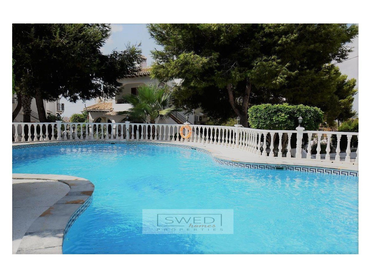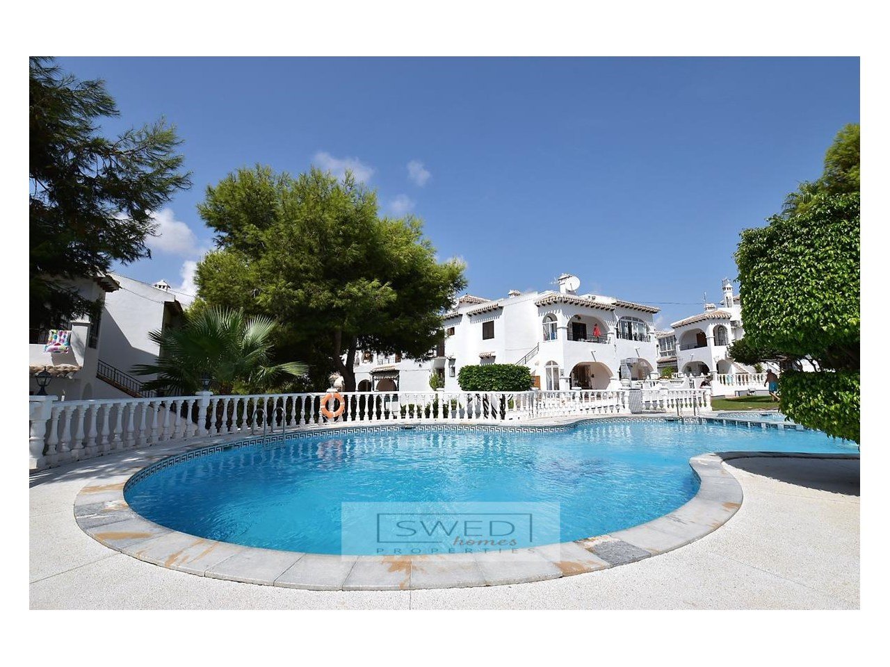Ett mycket trevligt och lugnt samhälle med bostäder i medelhavsstil med mycket välskötta gröna gemensamma utrymmen och en pool omgiven av palmer, naturligt gräs och träd.